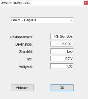 Objekt auswählen mit Koordinaten RA und DECL für JD2000.