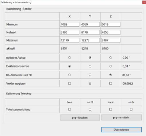 aktuell sind Sensoren über USB und COM Schnittstellen zur Ermittlung der Teleskopausrichtung möglich.